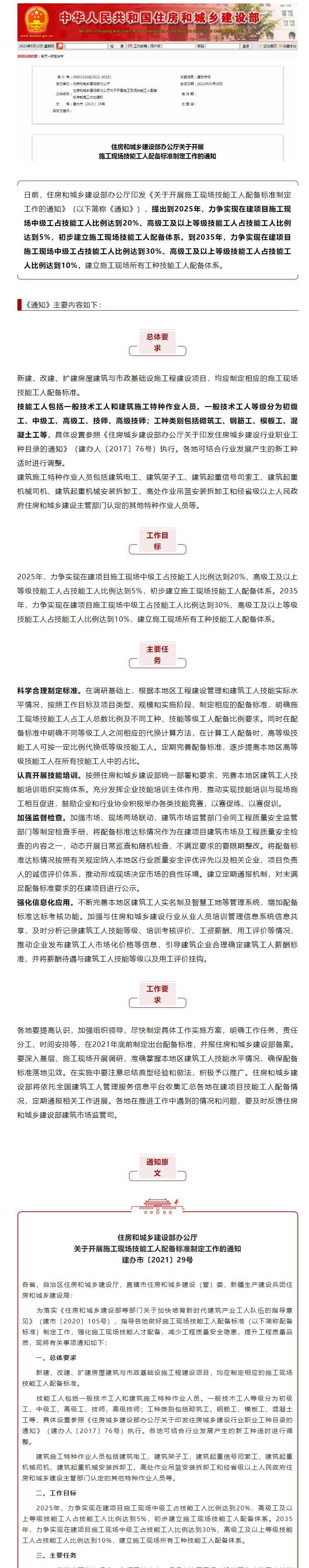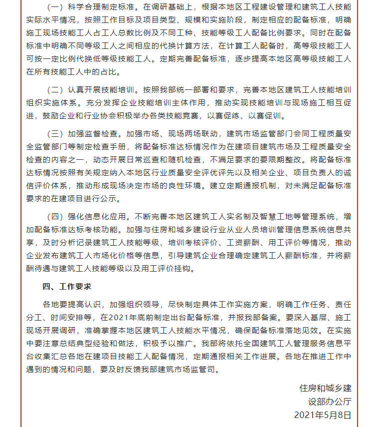 施工現(xiàn)場人員配備新標準來了!住建部:通知以后無技工證書,不能進入工地!