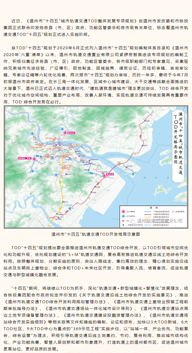 溫州市“十四五”城市軌道交通TOD整體發(fā)展專項(xiàng)規(guī)劃正式印發(fā)