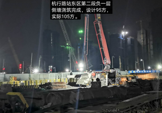 杭州地鐵杭行路站第二段負(fù)一層側(cè)墻混凝土澆筑