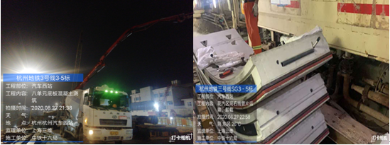 夜里9點(diǎn)半、11點(diǎn)杭州地鐵三號(hào)線地板砼澆筑、管片到場(chǎng)