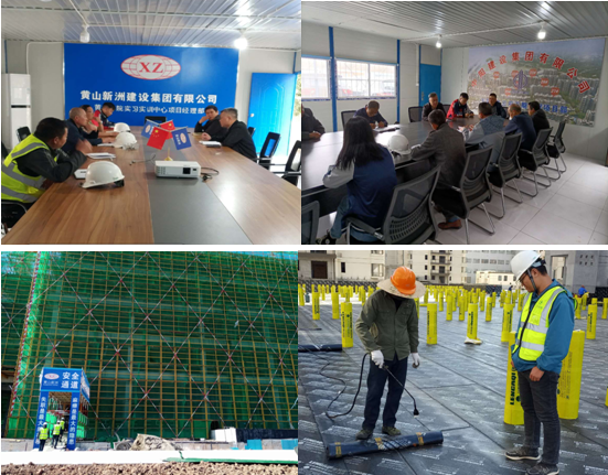 監(jiān)理部巡視黃山學(xué)院實(shí)訓(xùn)樓外架 玉屏府四期防水施工全程旁站