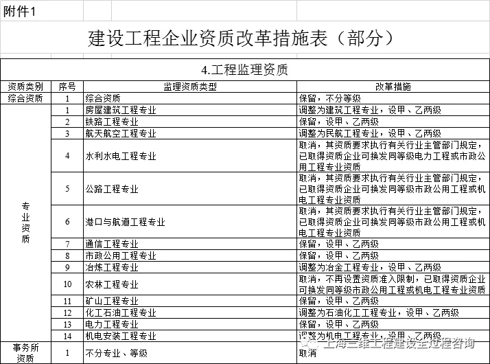 附件:1.建設工程企業(yè)資質(zhì)改革措施表