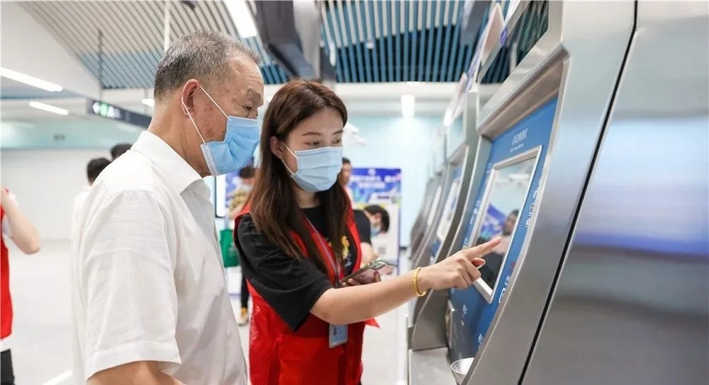 【12:20】市民在工作人員幫助下購票乘車。