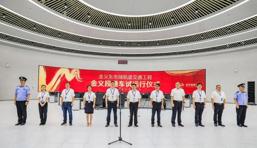6月28日9時10分,在金華軌道交通控制中心,隨著市軌道交通集團(tuán)黨委書記、董事長鄭公民一聲令下,主司機(jī)推動手柄,一列紅色額頭和腰線,具有金華辨識度的電動客車緩緩離開軌道大廈站,向八一南街站方向駛?cè)?/span>。
