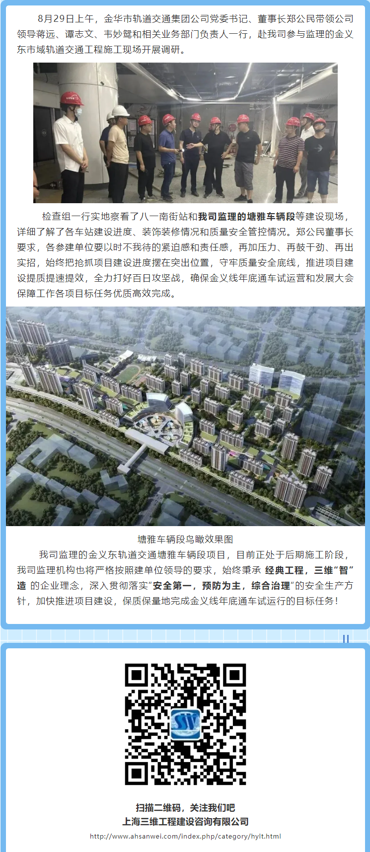 金華市軌道交通集團(tuán)領(lǐng)導(dǎo)一行調(diào)研我司參與監(jiān)理的金義東市域軌道交通項(xiàng)目施工現(xiàn)場(chǎng)