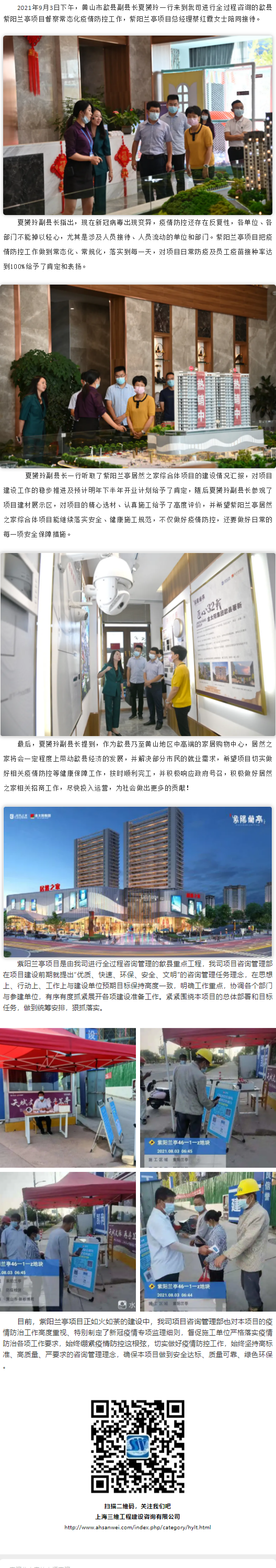 黃山市歙縣副縣長夏赟玲赴我司進行全過程咨詢的歙縣紫陽蘭亭項目督察常態(tài)化疫情防控工作