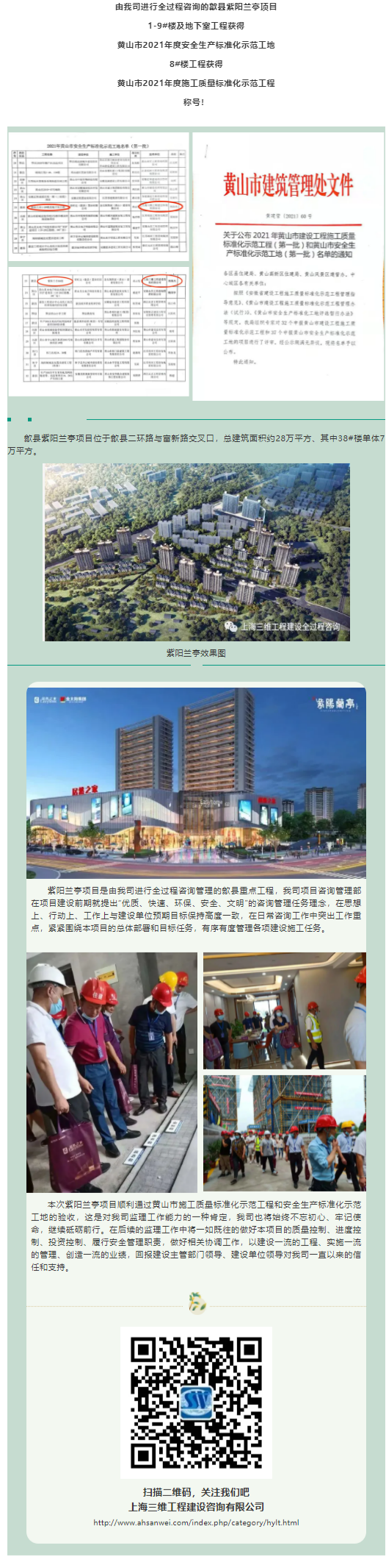 喜報|由我司進(jìn)行全過程咨詢的歙縣紫陽蘭亭項目獲得黃山市2021年度施工質(zhì)量標(biāo)準(zhǔn)化示范工程和安全生產(chǎn)標(biāo)準(zhǔn)化示范工地稱號!