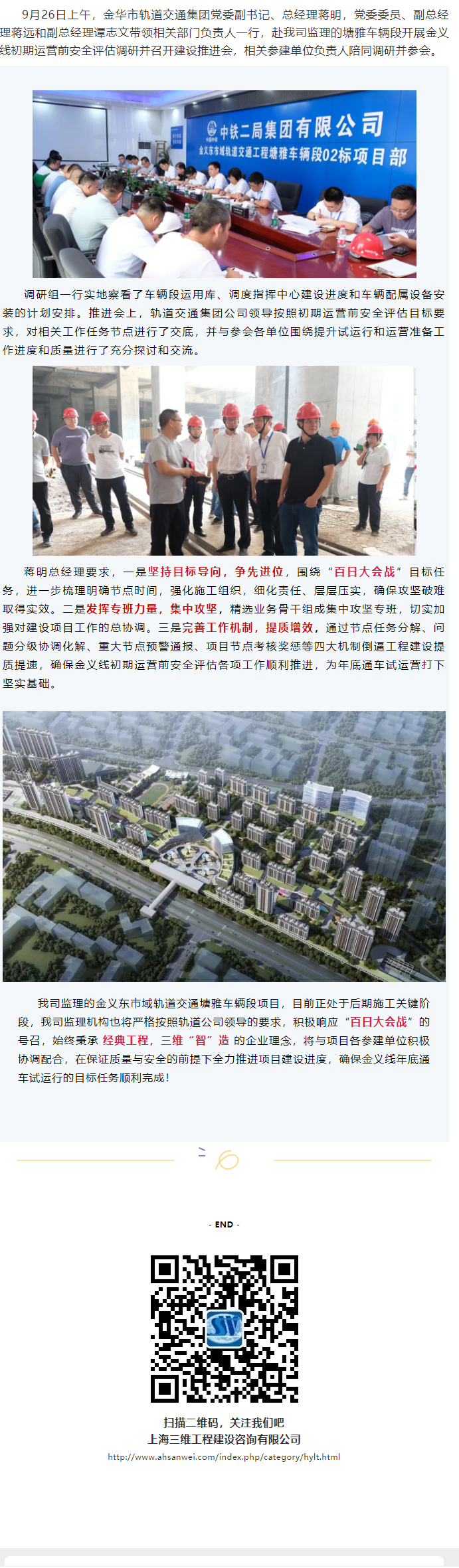 金華市軌道交通集團領(lǐng)導(dǎo)一行赴金義東市域軌道交通項目我司監(jiān)理的塘雅車輛段開展調(diào)研