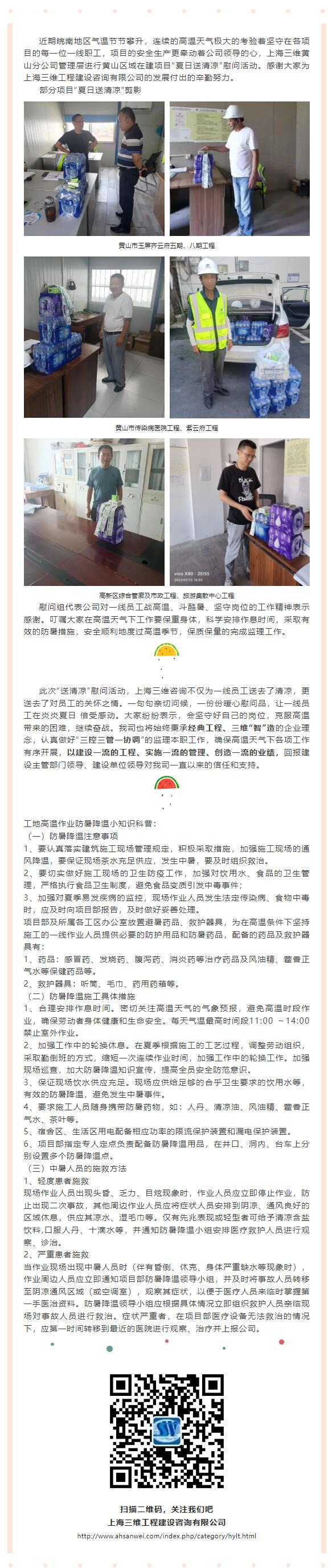 炎炎夏日送清涼 絲絲關懷暖人心——上海三維黃山分公司開展“夏日送清涼”活動